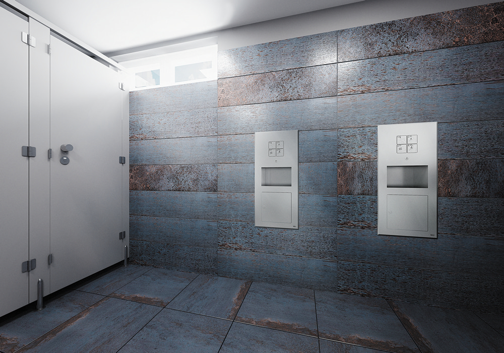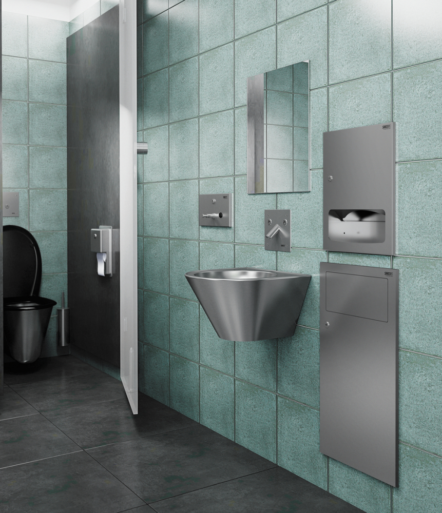 Rustfri tilbehør som dispensere til papirhåndklæder og toiletpapir, sæbedispensere eller multifunktionelle vaske er designet til vægmontering. Denne løsning reducerer risikoen for skader og bidrager samtidig til et rent og moderne interiør.