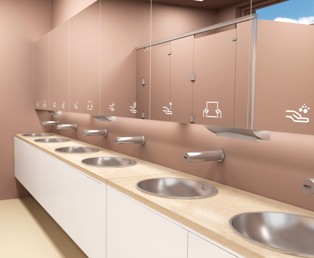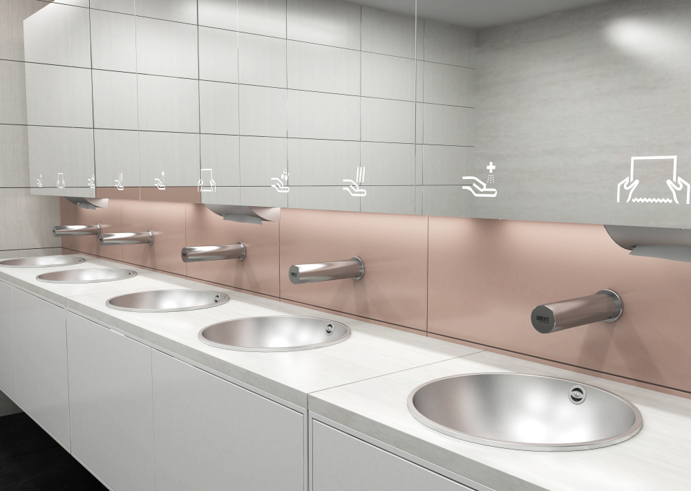 Moduler bag spejle er en løsning, hvor elementer som sæbedispensere, armaturer, håndtørrere eller papirhåndklædeholdere er placeret bag spejloverfladen. Resultatet er: