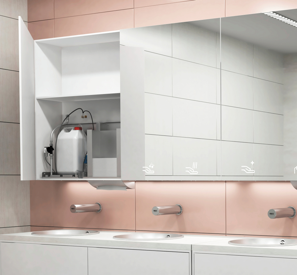 Moderne offentlige og kommercielle toiletter lægger i dag stadig større vægt på æstetik, hygiejne og nem vedligeholdelse. En af de mest effektive måder at opfylde disse krav på er moduler bag spejle, som elegant integrerer teknologi direkte i vaskerummets område.