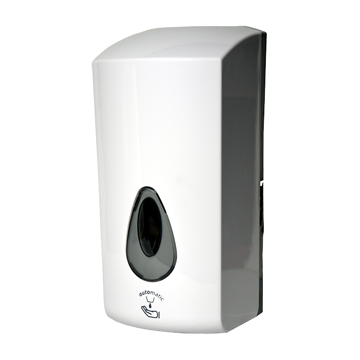 Automatisk dispenser til flydende sæbe og gel-desinfektion, volumen 1 l, hvidt ABS-plastik