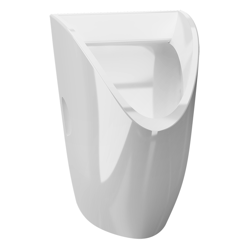 SLP 27Z - obj. ÄŤ. 01272 - keramisk urinal med radarskylleenhed inklusiv Bluetooth-modul, elektromagnetisk ventil, tilslutningsslanger, vinkelventil med filter og kontraventil, indløbsbeslag med gummitætning, vandlås, bore-skabelon i papir, strømforsyning