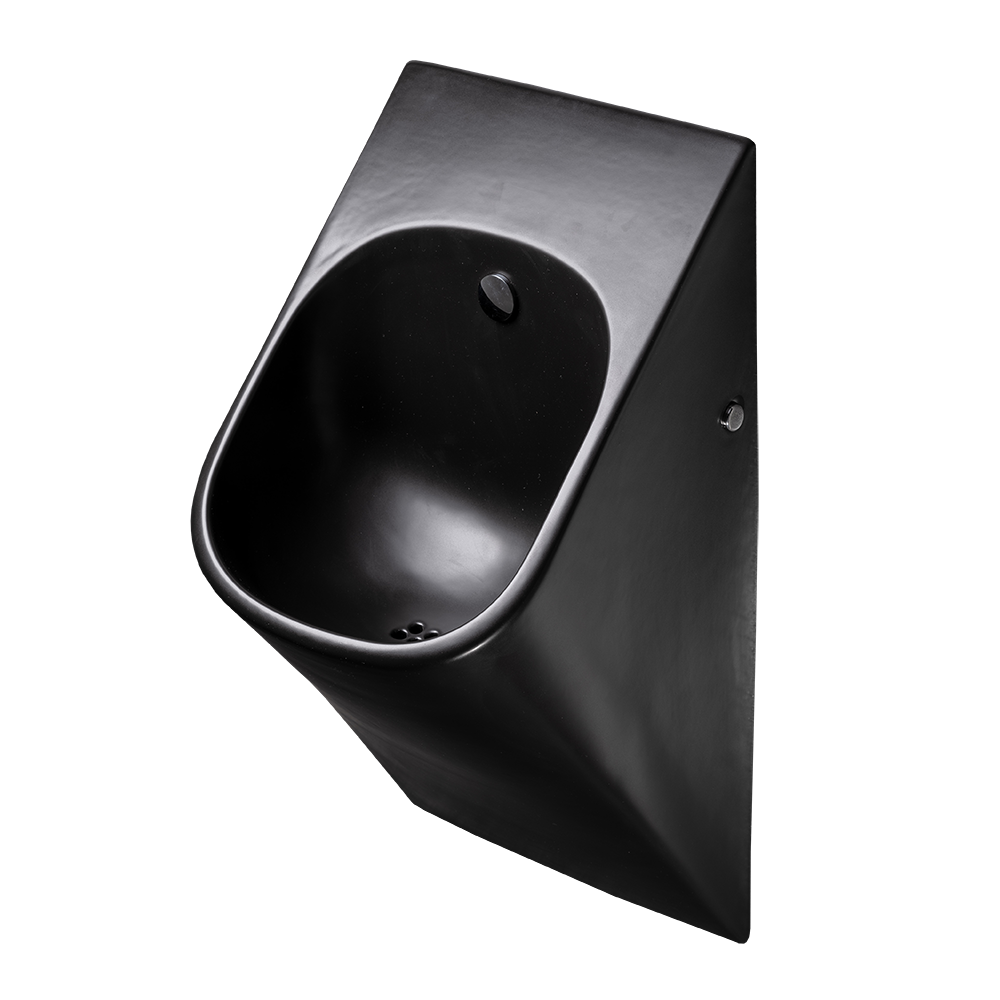 Sort keramisk urinal La Fontana med radar skylleenhed, 6 V