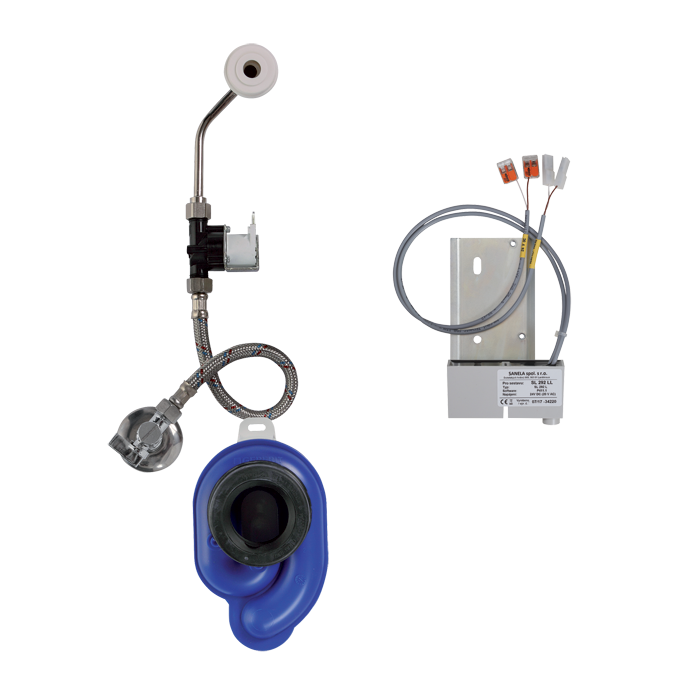 - parameter setting and communication with the electronics via the Sanela Control app (Bluetooth) or the SLD 04 remote control (acoustic indication of setting) without dismantling the urinal