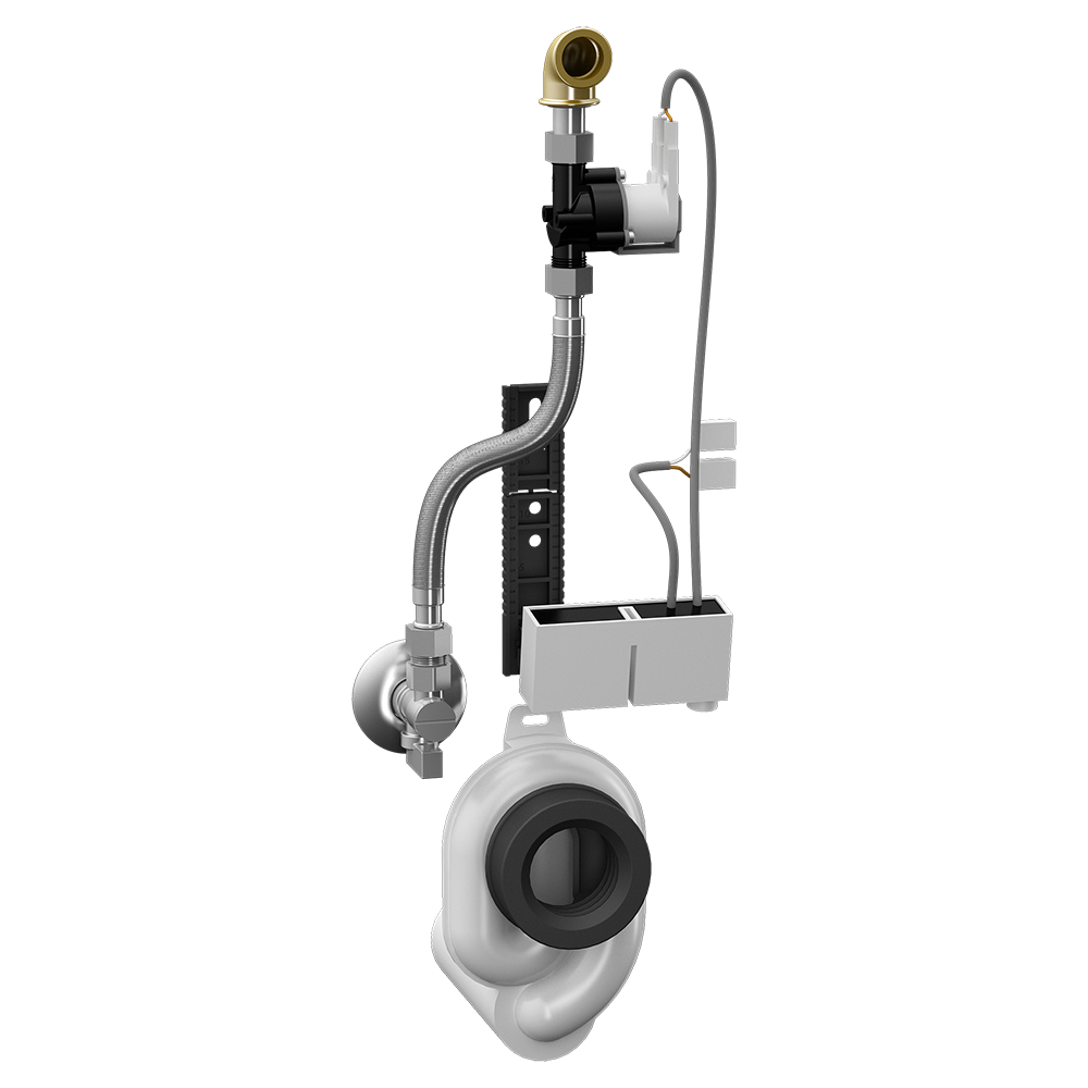 SLP 99S - Supply No. 21992 - radar flushing unit including Bluetooth module on the mounting rail, electromagnetic valve, connecting hoses, angle valve, inlet fitting with a rubber sealing, siphon