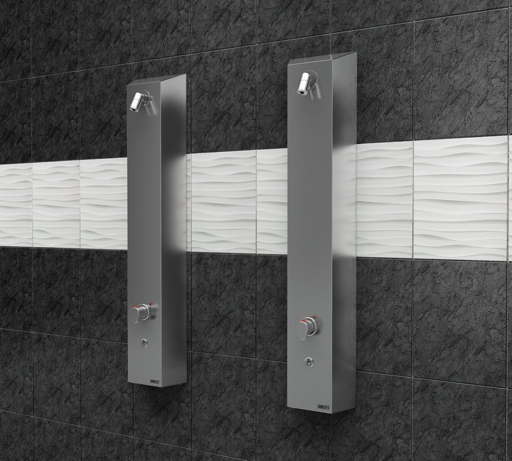 - brusepaneler til vægmontering i rustfrit stål med integreret piezoelektronik