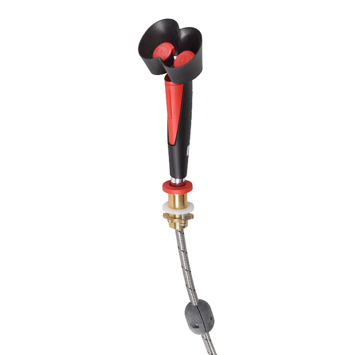- håndholdt øjenskyller med to sprayhoveder, hoved i en vinkel på 45 grader med bordholder