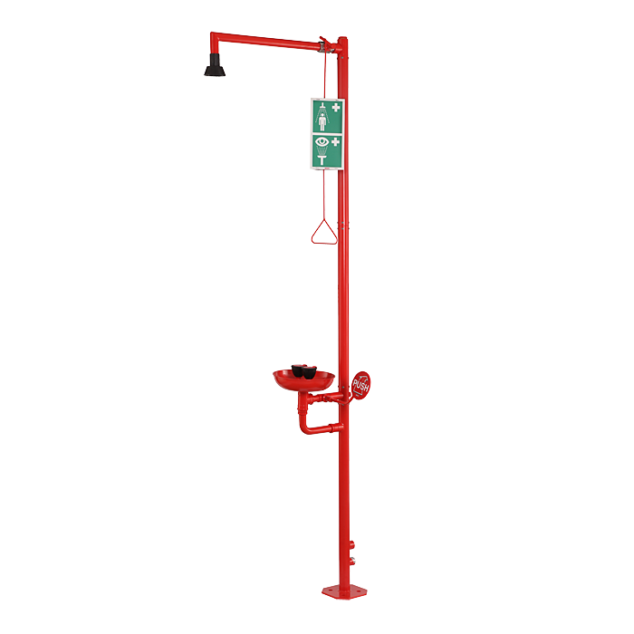 Fritstående krops- og øjenskyller - kropsbruser med startgreb og selvrensende brusehoved, øjenskyller med to sprayhoveder, skål og startgreb