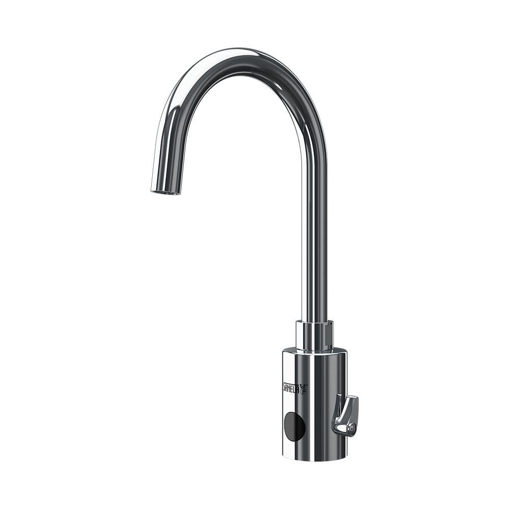 - vandet stopper med at løbe, når hænderne fjernes fra det aktive sensorområde efter justerbar tidsforsinkelse (kan indstilles i intervallet 0,25 – 7,75 s)