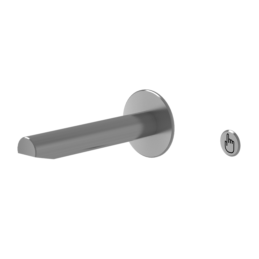 Sæt af vægmonteret håndvaskarmatur i rustfrit stål med piezo, til eftermontering, børstet, 24 V DC