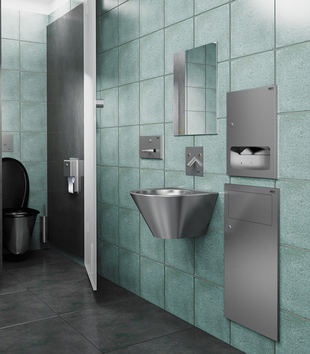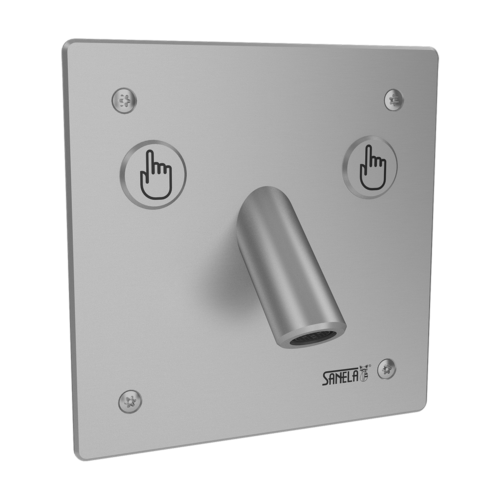 Automatisk vægmonteret armatur til varmt og koldt vand med hærværkssikret dæksel, 24 V DC