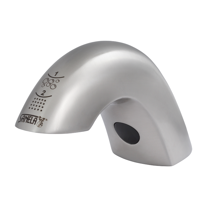 SLU 46MD - Varenr. 03467 - armatur med elektronik, Y-stykke, tilslutningsslanger, elektromagnetisk ventil (1 stk.), peristaltisk pumpe til flydende sæbe og beholder til flydende sæbe 1 l, SLZ 07 - vægstrømforsyning 230 V AC/24 V DC