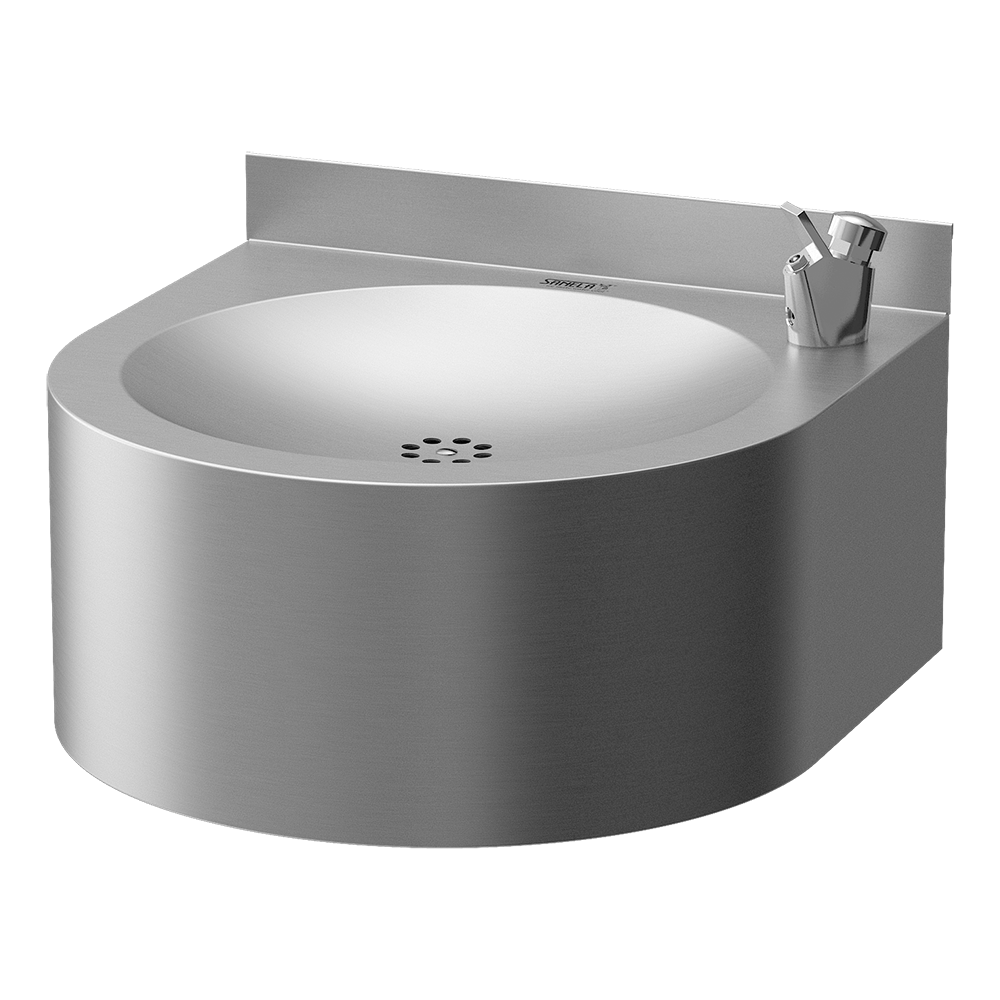 SLUN 14N - Varenr. 93144 - drikkefontæne i rustfrit stål, selvlukkende drikketud, vinkelventil med filter, tilslutningsslanger, vandlås, monteringssæt