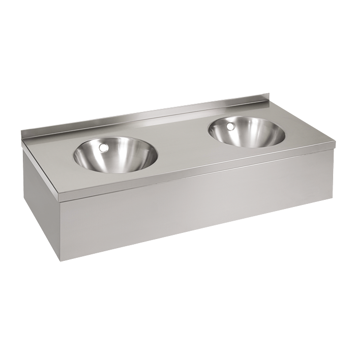 Væghængt dobbelt håndvask i rustfrit stål med frontpanel