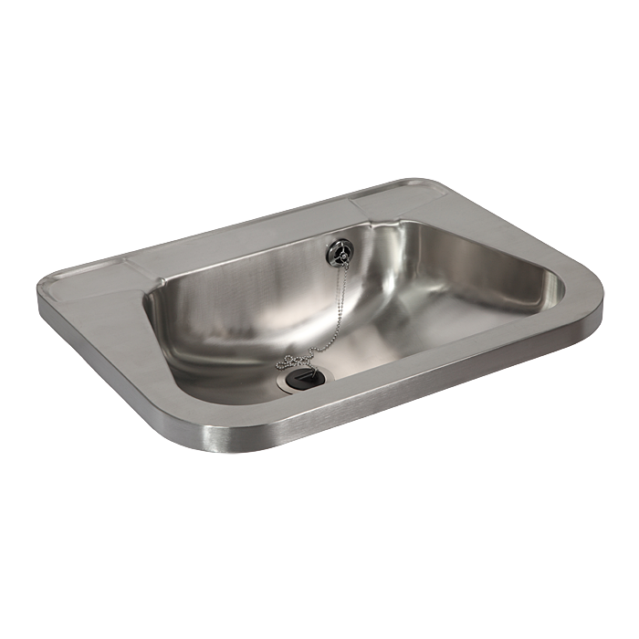 SLUN 26A - Bestillingsnr. 73262 - vask i rustfrit stål, konsol (2 stk.), overløbssæt med kæde og prop, vandlås, monteringssæt