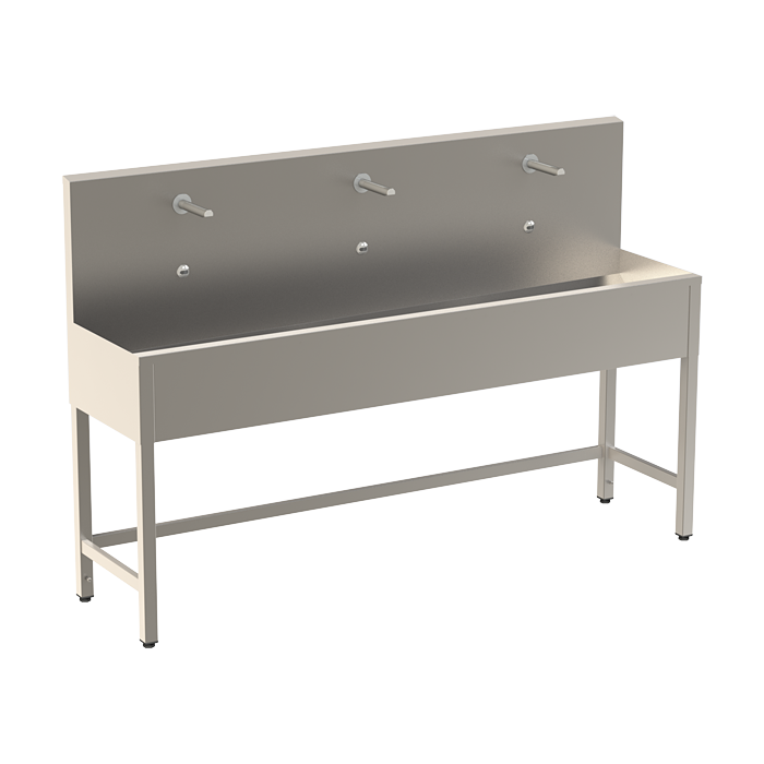 Vaskerende i rustfrit stål med 3 integrerede elektronikker, termostatventil, længde 1900 mm, 24 V DC