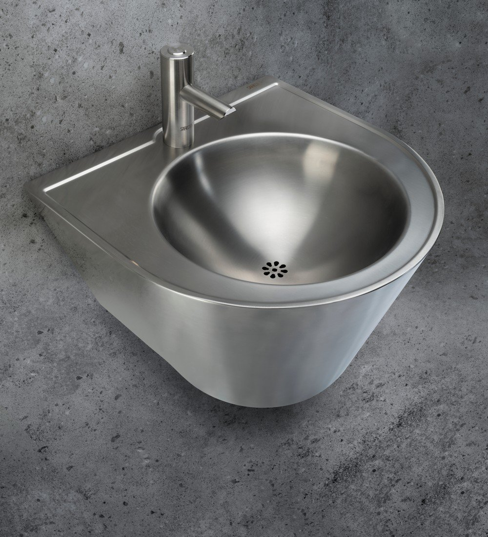 Hærværkssikret vægophængt konisk håndvask i rustfrit stål, Ø 360 mm