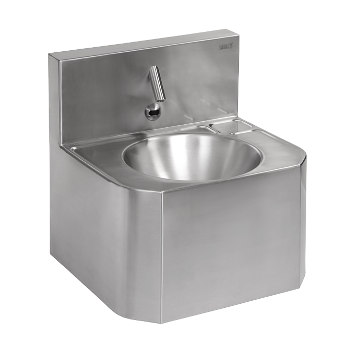 - Vægophængt håndvask i rustfrit stål med infrarød elektronik og speciel anti-selvmordstude