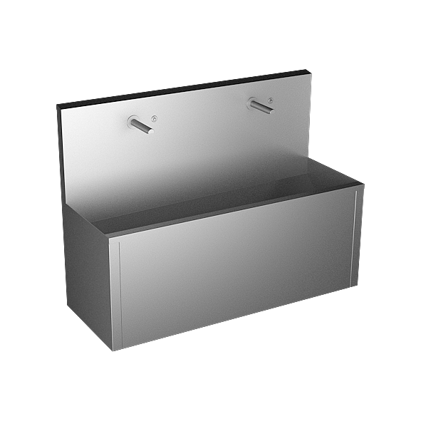 Hærværkssikret vægophængt vaskerende i rustfrit stål med 2 integrerede piezoelektronikker, længde 1250 mm, 24 V DC