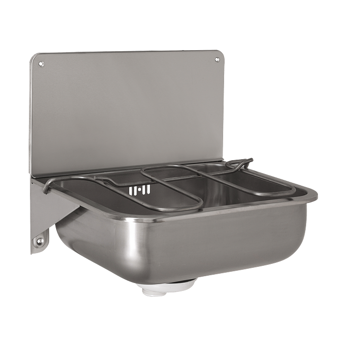 SLVN 01 - Varenr. 98010 - rustfri stålvask til rengøring, bagplade, rist, overløbssæt, vandlås, monteringssæt