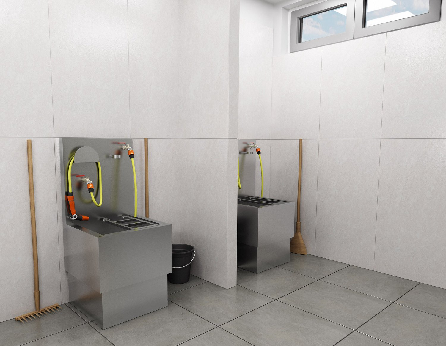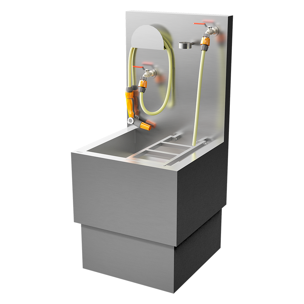 SLVN 07 - Varenr. 98070 - vask i rustfrit stål, hængslet rist, slange til skylning af affaldstank, påfyldningshane