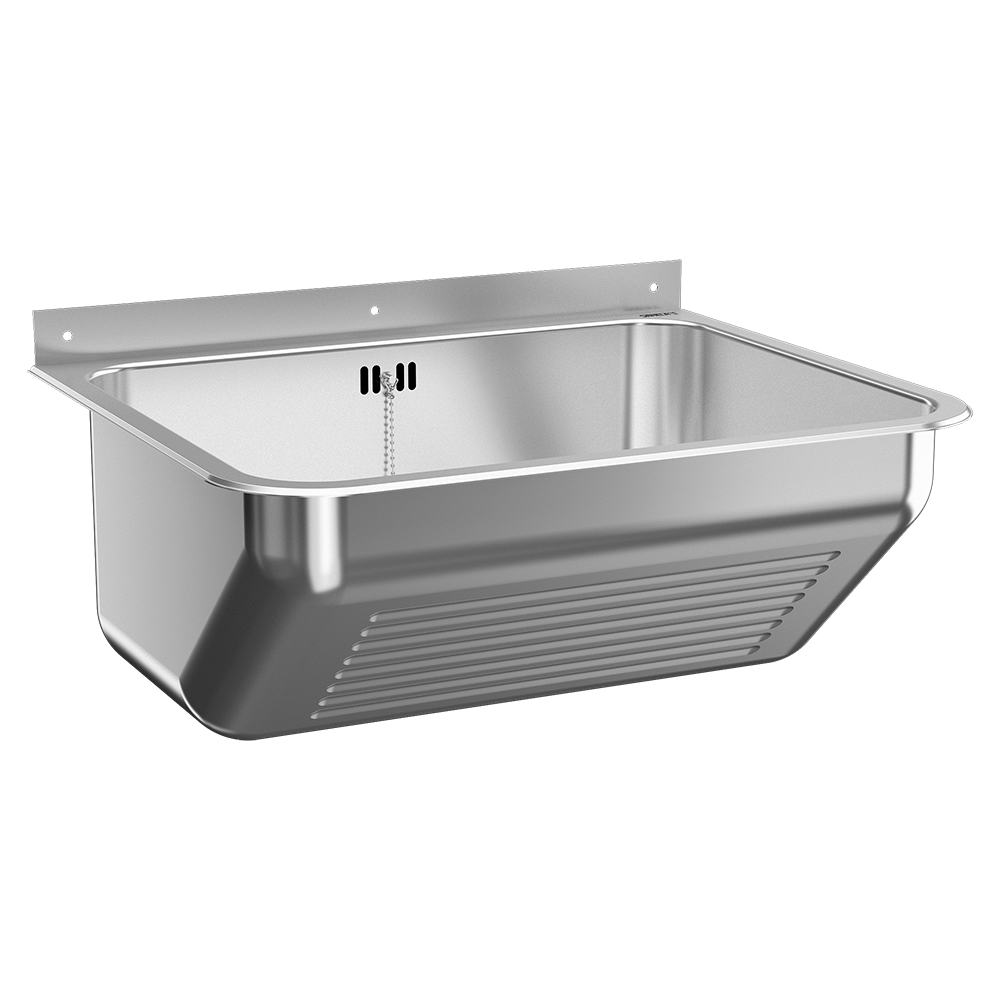 SLVN 08 - Varenr. 98080 - vaskekumme i rustfrit stål, overløbssæt, vandlås, monteringssæt