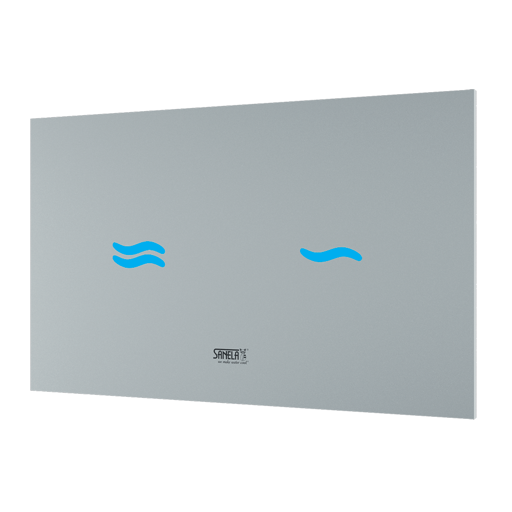 Elektronisk berøringsbetjent toiletskylleenhed, glasfarve REF 9003 hvid, baggrundsbelysning blå, 24 V DC