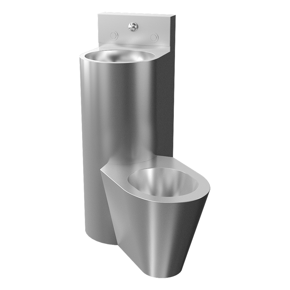 SLWN 08P - Varenr. 94082 - kombinationsenhed i rustfrit stål med toilet og håndvask, trykknap (2 stk.), håndvasktud, skruer M10 (6 stk.), tilslutningssæt