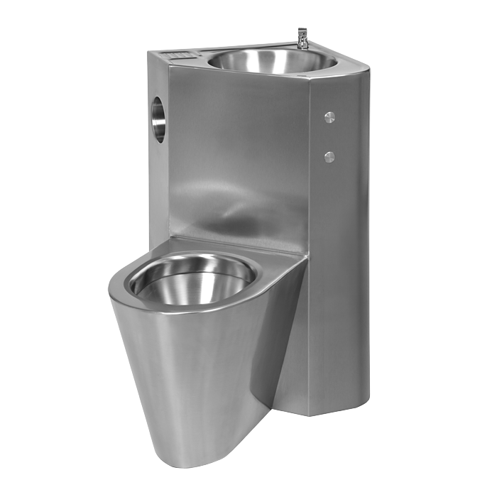 Vandal-proof piezo corner combination unit, hanging toilet on the left side