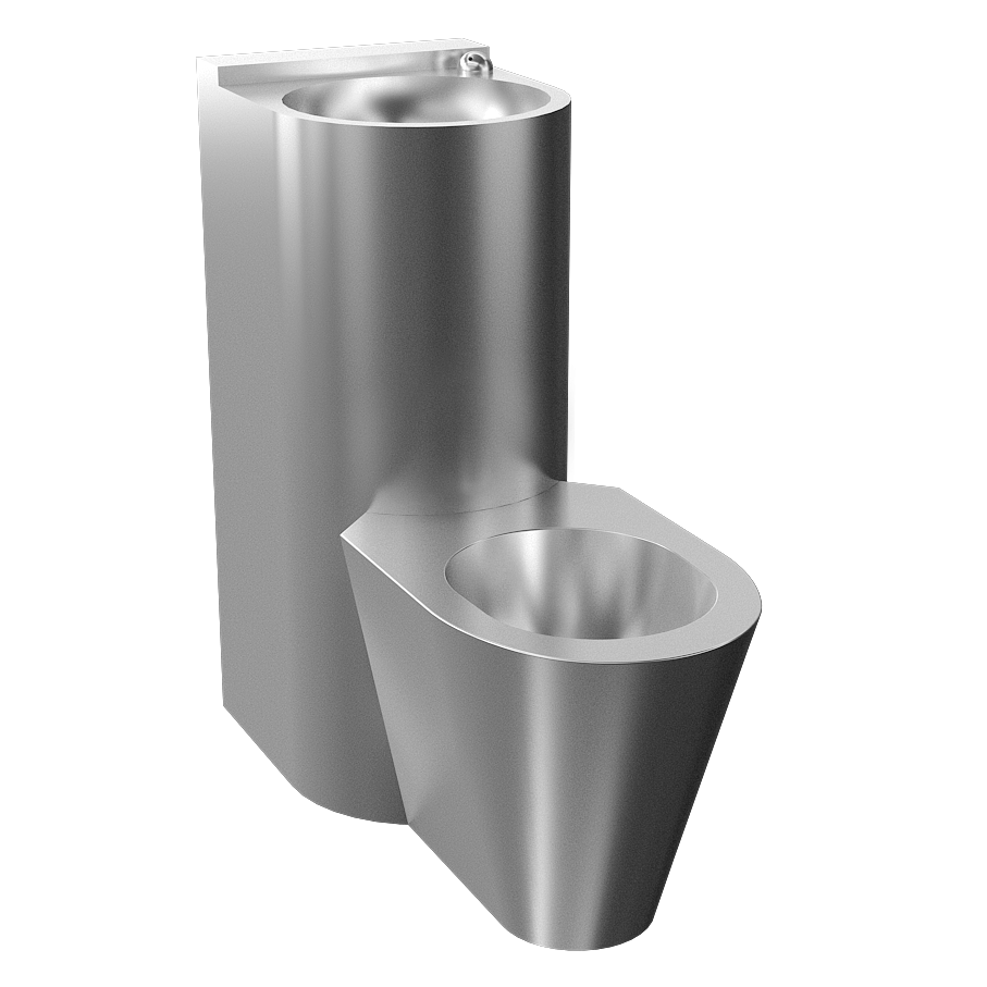 SLWN 28P - Varenr. 94283 - kombinationsenhed i rustfrit stål med toilet og håndvask, piezo elektronik (2 stk.), håndvasktud, skruer M6 (6 stk.)