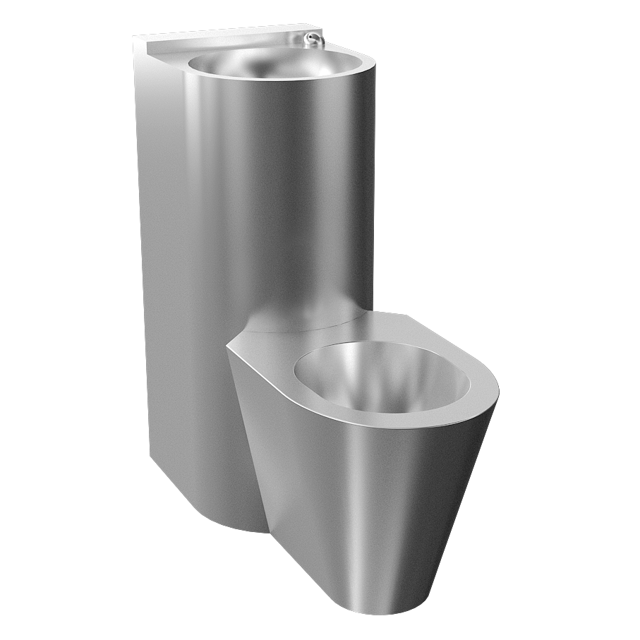 SLWN 38P - Varenr. 94383 - kombinationsenhed i rustfrit stål med toilet og håndvask, piezoelektronik (2 stk.), håndvudløb, monteringssæt