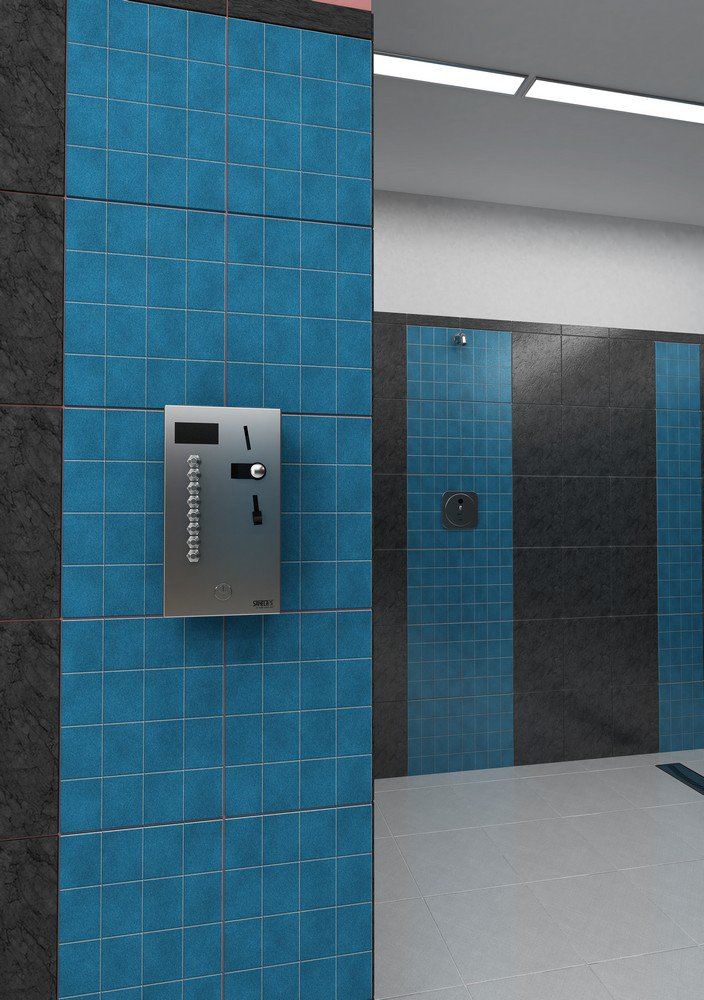 Coin and token shower timer for four to twelve showers, 24 V DC, choice of shower by the machine, direct control