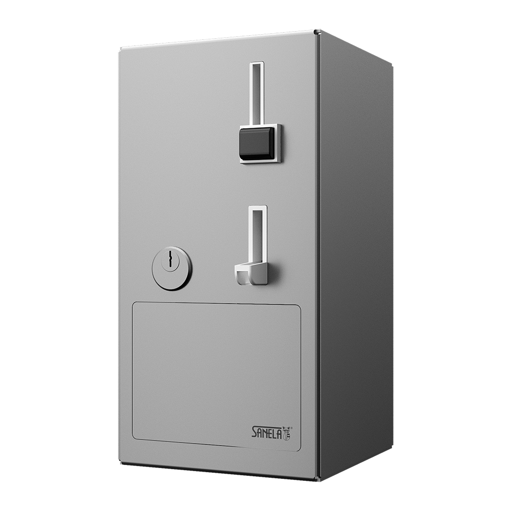 SLZA 03M - Varenr. 88031 - rustfrit stål møntmaskine med elektronik, møntholder og møntboks, sæt med nøgler (2 stk.)
