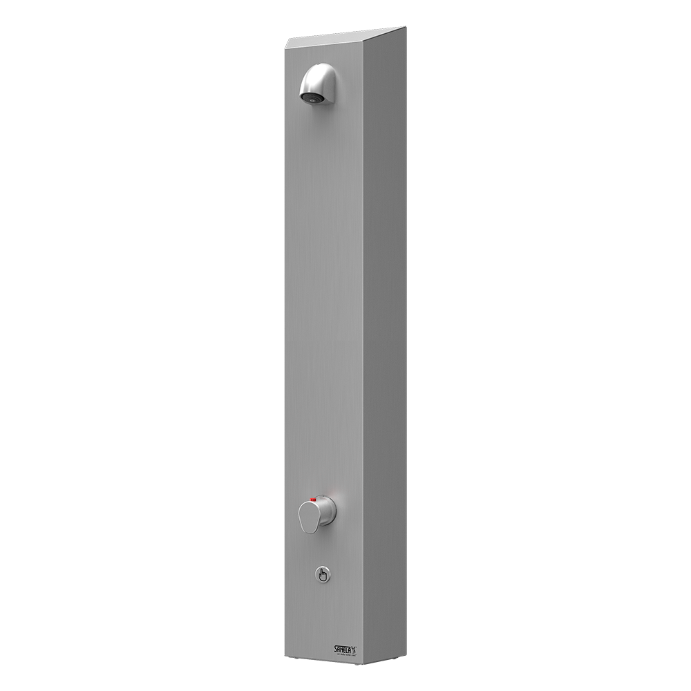 SLZA 21PT - Bestillingsnr. 88209 - brusepanel i rustfrit stål, elektromagnetisk ventil (1 stk.), termostatblander, tilslutningsslanger, vinkelventil med filter og kontraventil (2 stk.)