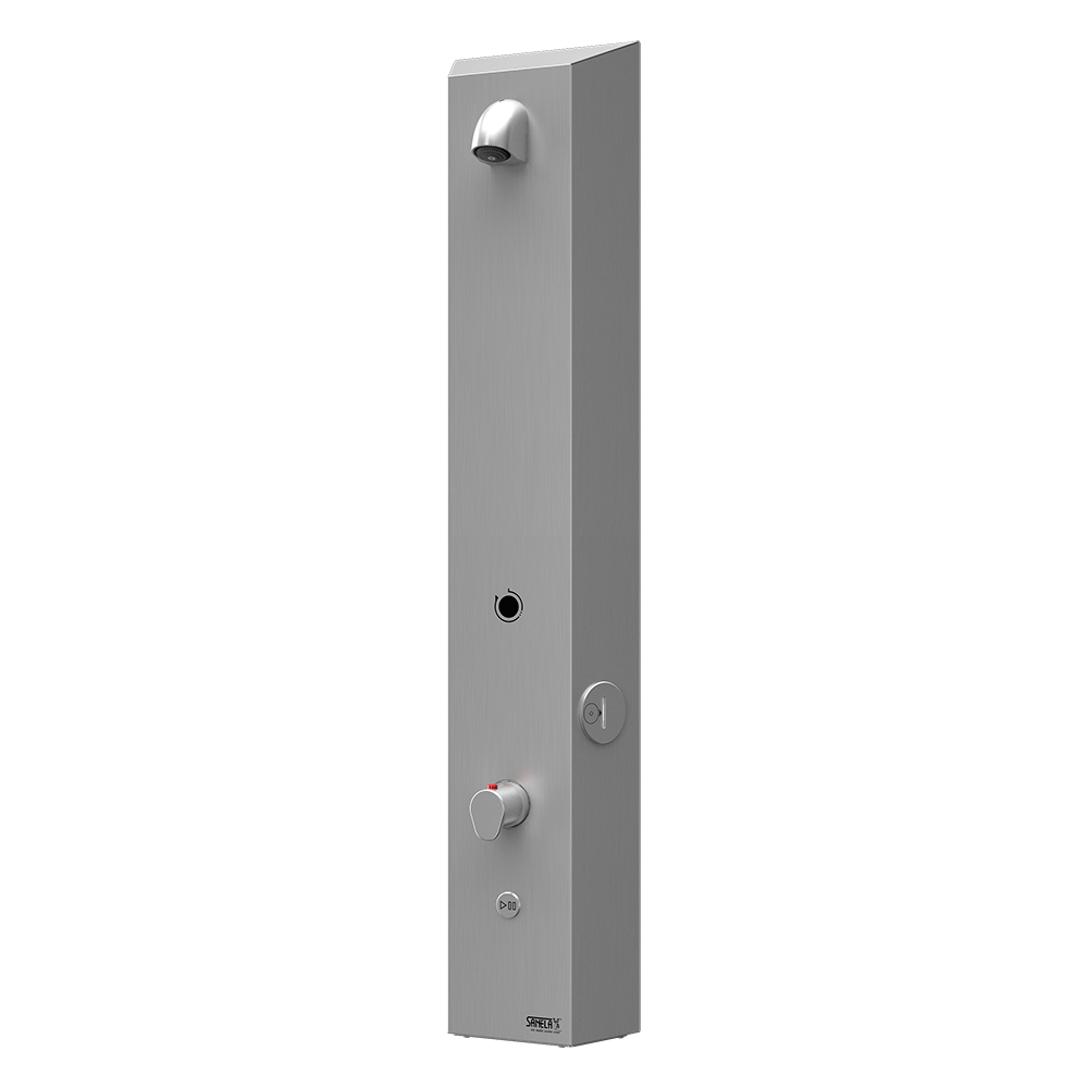Brusepanel til poletter i rustfrit stål, med termostatisk blandingsbatteri til koldt og varmt vand, 24 V DC