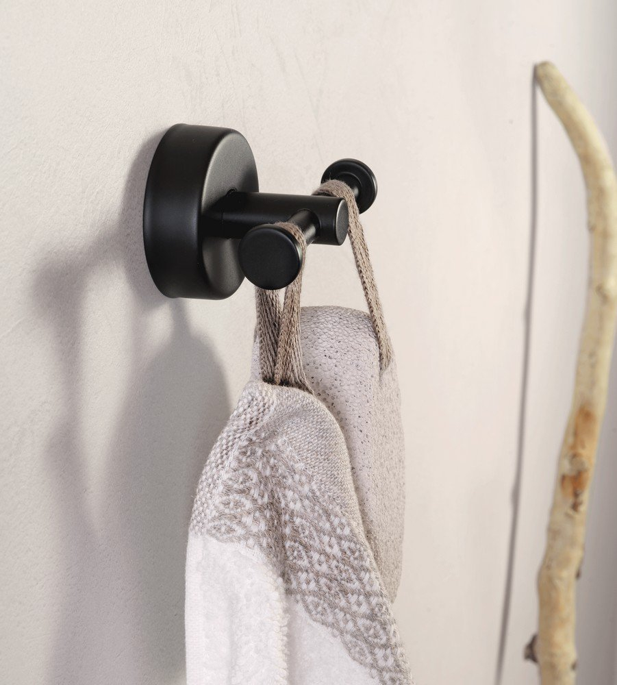 Bøjle i rustfrit stål med to kroge, sort mat finish