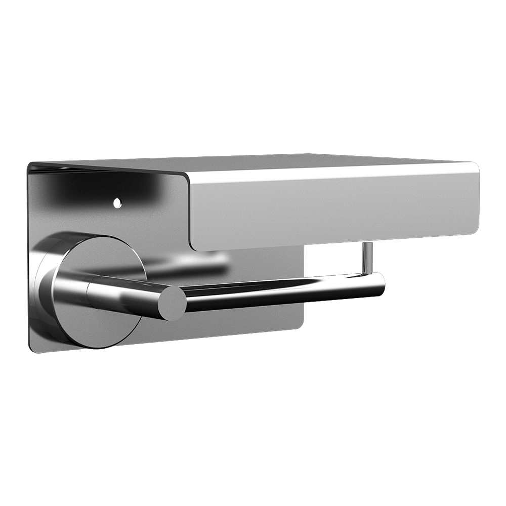 Holder i rustfrit stål til toiletpapir med hylde, poleret finish