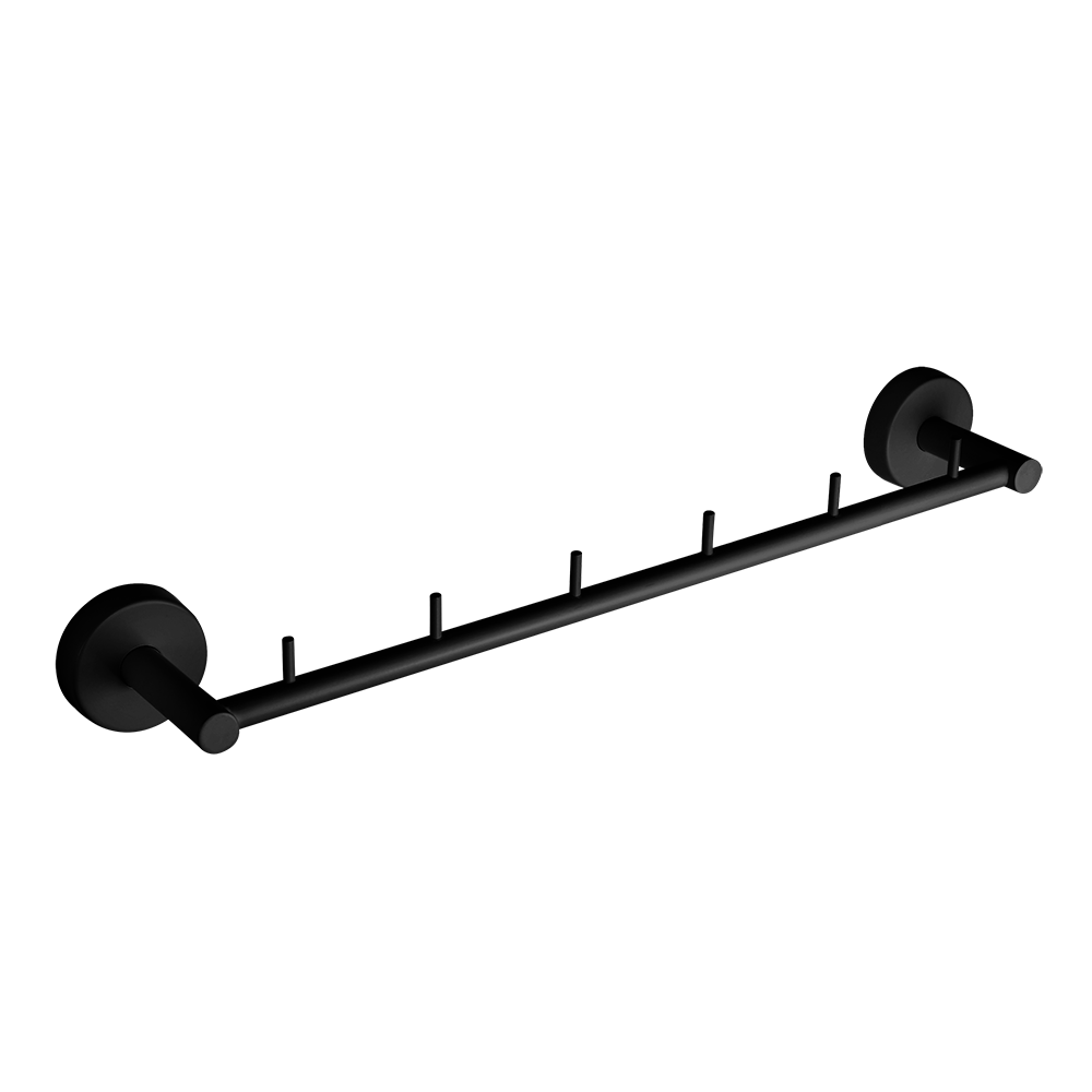 Bøjle i rustfrit stål med seks kroge, sort mat