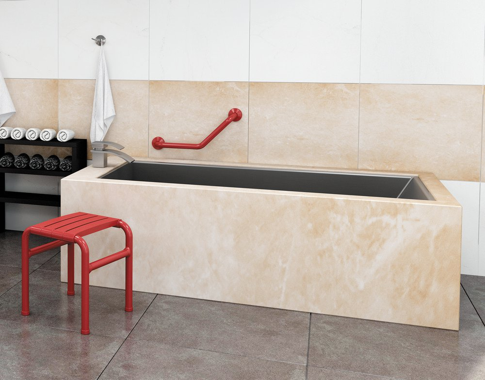 Fastmonteret vinyl badestøttestang, dimensioner 552 x 275 x 100 mm