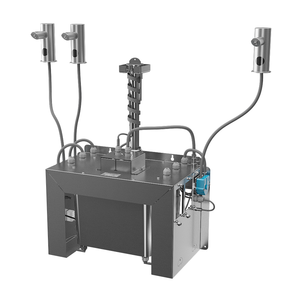SLZN 91E3 - Leveringsnr. 85913 - tud i rustfrit stål med elektronik (3 stk.), indløbsslanger, central sæbedispenser med peristaltiske pumper til flydende sæbe og sæbebeholder 6 l, strømforsyning SLZ 01Y, fjernbetjening SLD 03