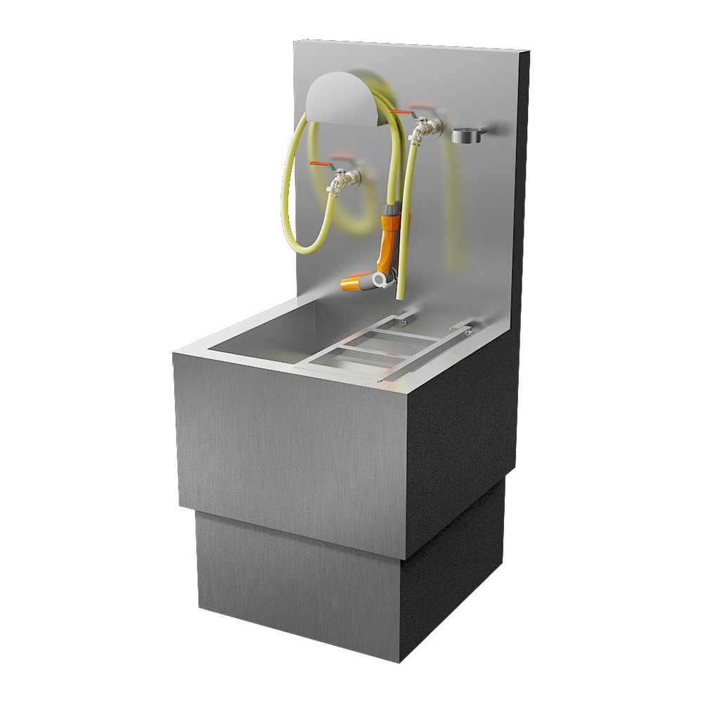 Udslagskummen SLVN 07 er fuldt udstyret! Den leveres med en slange til skylning af WC-kassetten, en påfyldningshane og en rist, hvilket gør vedligeholdelse og rengøring af kemiske toiletter nemmere.