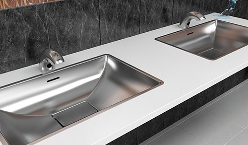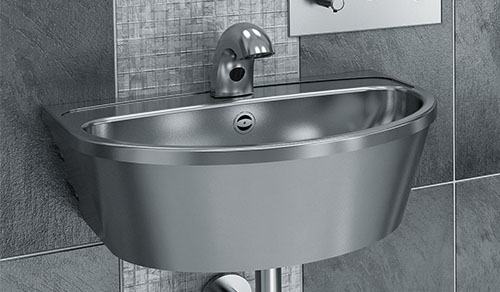 Væghængt vask i rustfrit stål med integreret elektronik, 24 V DC
